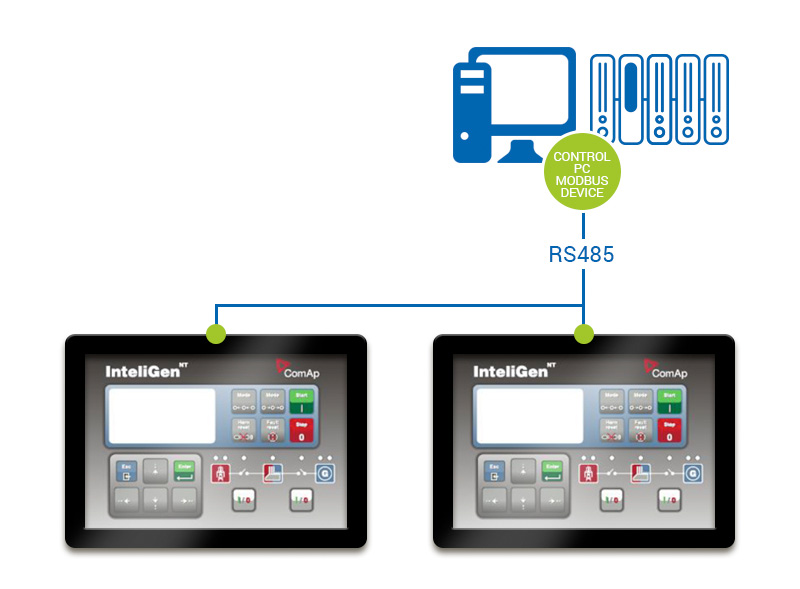 Tekli veya çoklu jeneratörün Modbus RS-485 veya Modbus TCP üzerinden bilgilerinin Windows tabanlı bir scadaya aktarılarak izlenmesi.